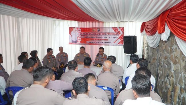 Kapolres Pasuruan AKBP Jazuli Dani Iriawan meminta jajarannya memberikan pelayanan terbaik dan humanis kepada masyarakat. Ia mengingatkan bahwa polisi adalah pelayan masyarakat, bukan tuan.