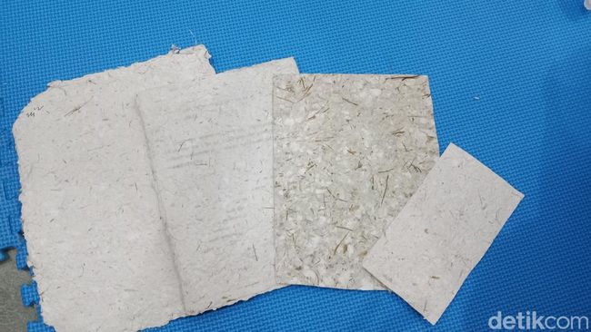Setelah kering, kertas hasil daur ulang bisa diambil perlahan dan dihias menggunakan peralatan seperti spidol warna, benang sulam, kertas lipat, hingga bunga kering. Seluruh peserta terlihat antusias mengkreasikan kertas eceng gondok mereka.