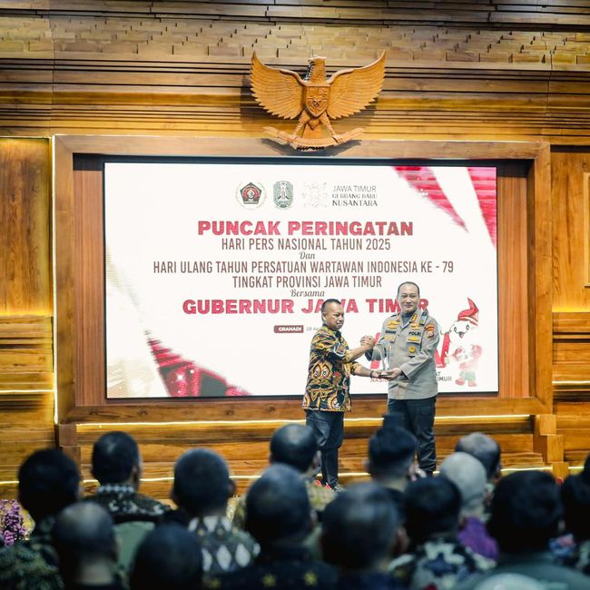 Penghargaan bergengsi ini diserahkan pada malam puncak Peringatan Hari Pers Nasional (HPN) 2025 dan HUT ke-79 PWI Jatim, yang berlangsung di Gedung Negara Grahadi, Jalan Gubernur Suryo, Surabaya, pada Senin malam (28/4/2025).
