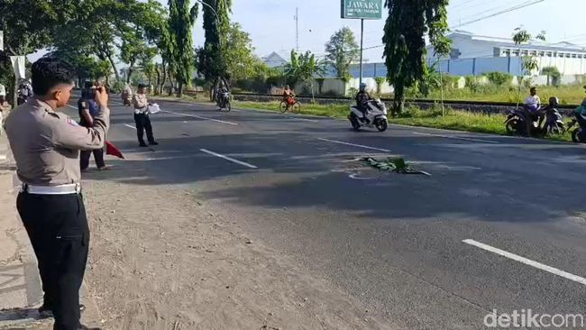 Apesnya, korban tertabrak kendaraan yang melaju dari arah berlawanan. Setelah menabrak korban, kendaraan itu terus melaju dan kabur.