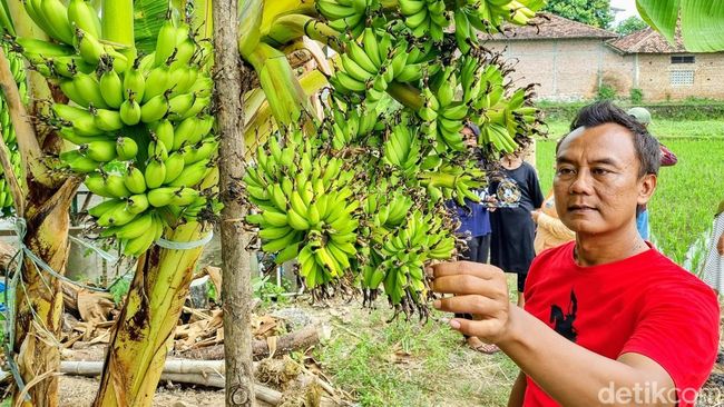 Untuk mencegah pohon roboh karena beratnya beban, Rudi pun menopangnya dengan kayu. Ia mengatakan, pisang ini tetap dibudidayakan karena memiliki banyak benih dan bisa dipanen lebih banyak.