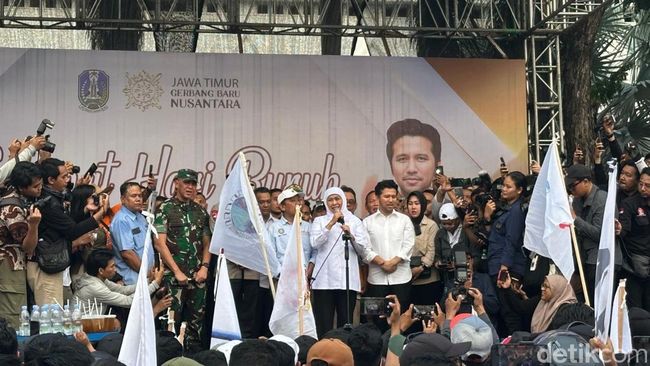 "Mulai pelatihan ketenagakerjaan dan kuota siswa, kami akan perjuangkan dan anggarannya ada," kata Khofifah saat menemui para buruh di Kantor Gubernur Jatim, Kamis (1/5/2025).