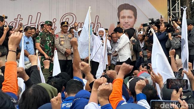Ketua FSPMI Jatim, Jazuli berterima kasih kepada Gubernur Khofifah. "Kami 6 tahun bersama Bu Khofifah, ibunya buruh Jatim. Hidup Bu Khofifah, apa yang sudah diberikan beliau kado terindah," tandas Jazuli.