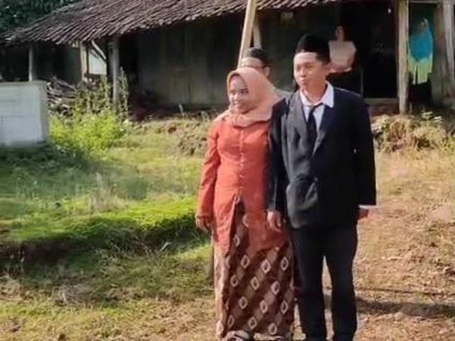 Kedua mempelai pengantin itu adalah Siti Fatonah (29) dan Ribut Ariyanto (40). Dalam video yang beredar, keduanya menggelar resepsi pernikahan sangat sederhana.