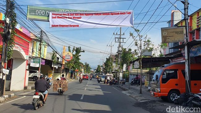 Ada pula spanduk lain bertuliskan "Singosari ora didol! KEK mek nggusur rakyat ambek ngrusak alam tok! Endi Manfaate gae warga (Singosari bukan untuk dijual! KEK hanya menggusur rakyat dan merusak alam saja! Mana manfaatnya untuk warga)?"