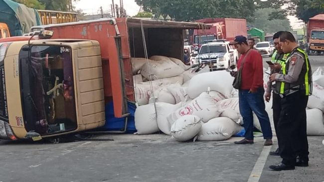 Akibatnya, truk terguling dan muatan tumpah memenuhi ruas jalan arah Malang. Kemacetan tidak terhindarkan. Polisi melakukan contra flow.
