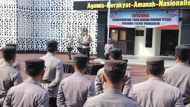 "Kasus ini yang menangani adalah Bidpropam Polda Jatim, kami hanya menjalankan putusan untuk upacara PTDH saja. Tadi upacara digelar secara in absentia atau tanpa dihadiri oleh yang bersangkutan," kata AKBP Maliki, Selasa (6/5/2025).