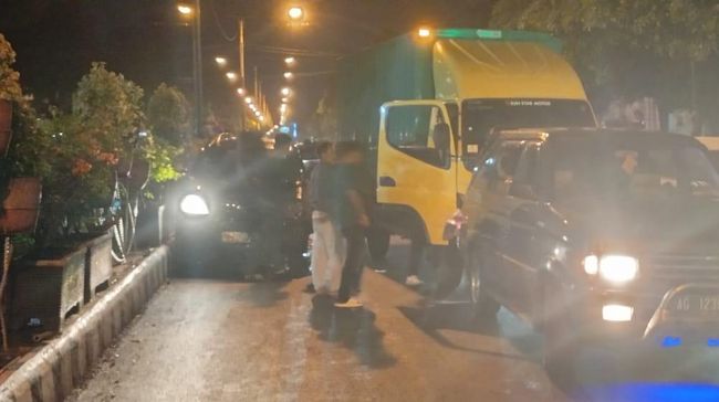Berdasarkan informasi yang dihimpun, truk boks melaju dari arah utara menuju ke selatan. Saat mendekati traffic light, truk tadi menabrak sebuah mobil hitam dengan nomor polisi W 1094 CO.