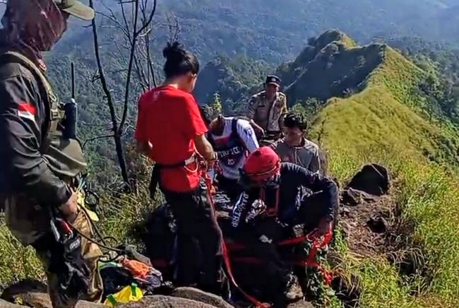 Jenazah Baim, pendaki asal Jember yang terjatuh saat mendaki Gunung Saeng, ditemukan tersangkut di rumpun pohon setelah perjuangan berat tim penyelamat. Pencarian yang penuh risiko itu melibatkan tiga personel vertical rescue yang turun menyusuri tebing menggunakan seutas tali carnmantel.