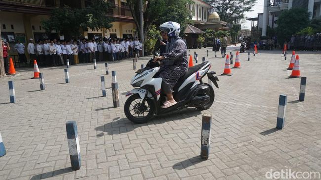 "Jadi, para santri dan santriwati bisa lebih jelas memahami dan bisa langsung mempraktikkan berkendara yang aman," ujarnya kepada wartawan di lokasi, Jumat (9/5/2025).