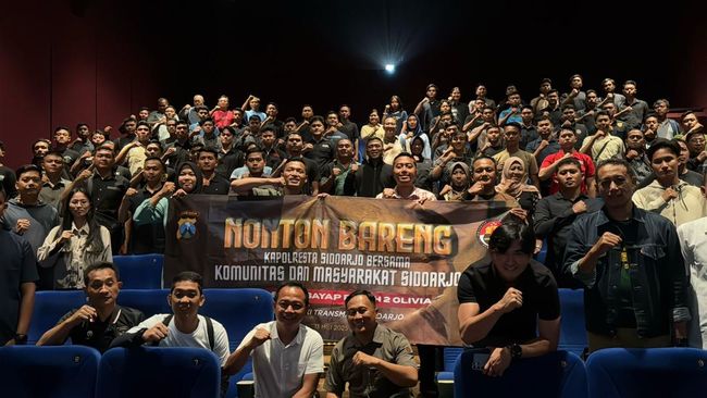 Kapolresta Sidoarjo Kombes Christian Tobing menggelar acara nonton bareng (nobar) film Sayap-Sayap Patah 2 bersama masyarakat di XXI Transmart Sidoarjo, Selasa (13/5/2025). Kegiatan ini turut dihadiri pejabat utama Polresta, sejumlah komunitas, serta tokoh masyarakat.