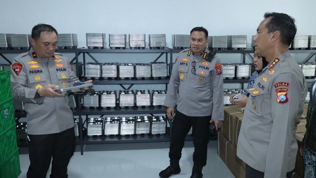 Selanjutnya, Pasma dan rombongan mengecek peralatan SPPG di Aspol Blok E Sekolah Polisi Negara (SPN) Polda Jatim, Bangsal, Mojokerto. Dapur umum ini siap menyuplai makan bergizi gratis (MBG) bagi para siswa di 13 SD dan 3 desa di Kecamatan Bangsal.
