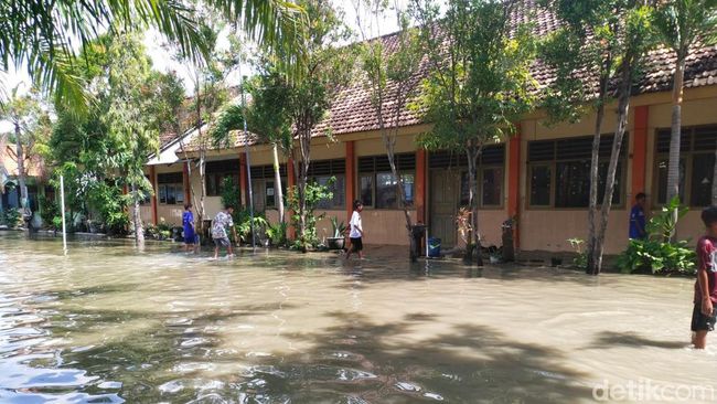"Sungai Kruwul mengalami kenaikan debit air yang disebabkan curah hujan tinggi ditambah limpasan air dari Waduk Gondang sehingga air meluber ke area ruas jalan dan fasilitas umum berupa gedung SD," kata Kadis Kominfo Lamongan, Sugeng Widodo saat dikonfirmasi wartawan, Jumat (16/5/2025).