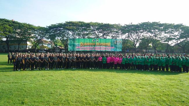 Tawa lepas terdengar ketika para anggota Kodim 0802 Ponorogo dan Polres Ponorogo memulai senam pemanasan. Di barisan belakang, terlihat pula para ibu Persit KCK Cabang XVI dan Bhayangkari yang tak kalah semangat mengikuti gerakan instruktur.
