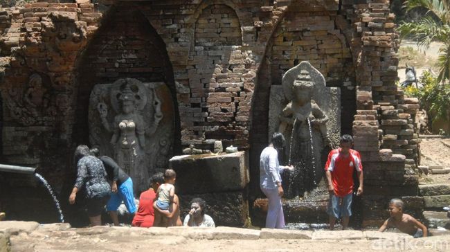 "Kemarin itu ada dua orang mandi di kolam. Setelah mandi, mereka meninggalkan area. Tidak lama kemudian datang ibu-ibu masuk area. Mereka berfoto-foto di depan arca," terang Astono.