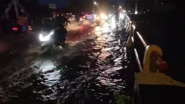 Pengalihan arus kendaraan ini agar pengendara tidak terjebak banjir. Karena kedalaman banjir 50 centimeter.