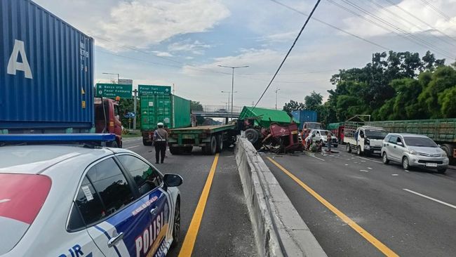 Tabrakan keras terjadi di Tol Waru-Perak antara truk muat kontainer dengan pembatas jalan. Kecelakaan tunggal yang mengakibatkan kepala truk sampai lepas itu diduga karena sopirnya mengantuk.