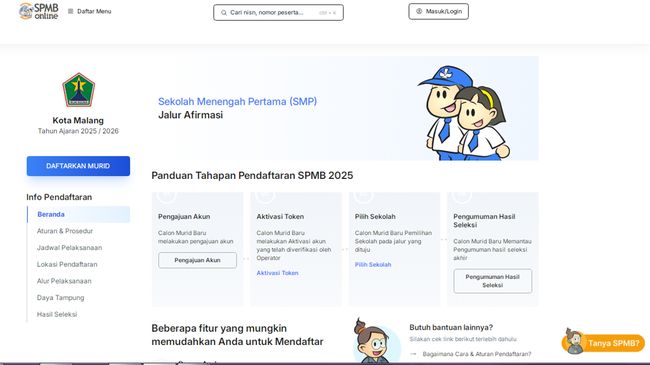 Penerimaan Peserta Didik Baru (PPDB) atau yang sekarang disebut SPMB (Sistem Penerimaan Murid Baru) akan segera dimulai. Tak terkecuali untuk jenjang SMP di Kota Malang.