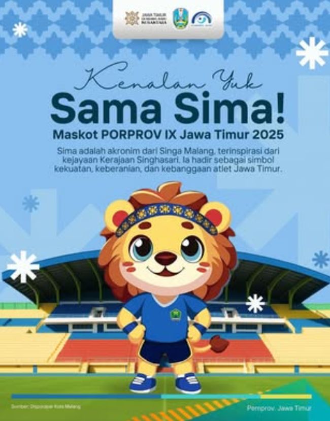 Selain kompetisi yang sengit, Porprov IX Jatim 2025 juga menarik perhatian publik dengan kehadiran maskot resminya yang diberi nama Sama Sima. Maskot ini bukan sekadar ikon visual, tetapi mengandung filosofi mendalam tentang semangat sportivitas, persatuan, dan kebanggaan daerah.