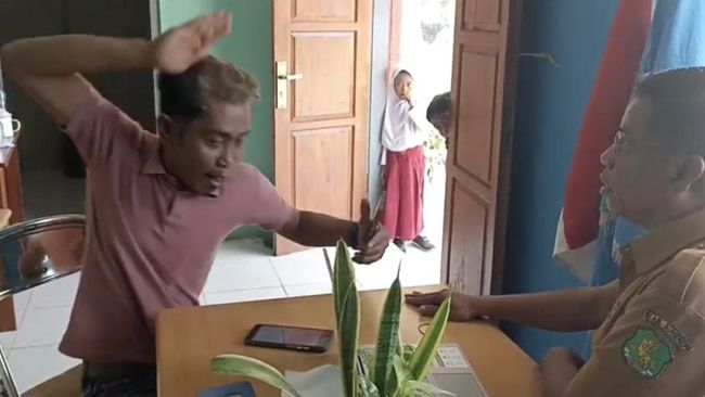 Lantaran situasi kian tak terkendali, pria itu diminta keluar dari ruang guru. Namun, ia menolak dan justru menantang untuk dipukul.