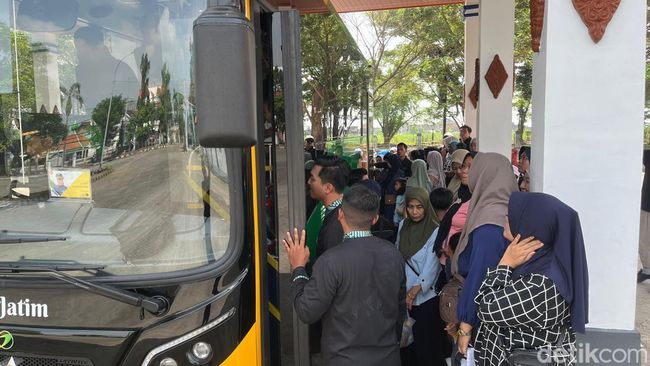 "Soalnya kepo dengan isi bus dan suasananya bagaimana. Terlebih belum pernah naik bus ini. Sudah 2 jam lebih menunggu," ujar Putri Amelia (14), warga Pungging, Mojokerto.