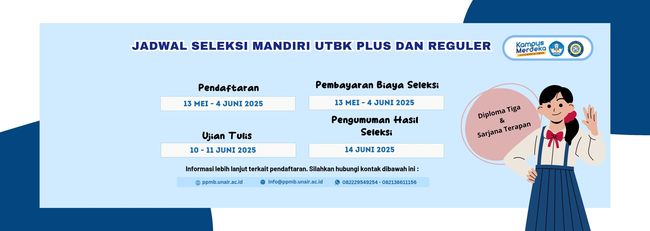 Dilansir dari laman resmi Unair, Jalur Mandiri UTBK Plus ditujukan bagi peserta yang telah mengikuti UTBK-SNBT 2025, namun belum berhasil lolos di seleksi nasional. Seleksi ini memadukan nilai UTBK dengan hasil Tes Kemampuan Akademik (TKA) tambahan yang wajib diikuti pendaftar.