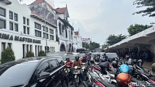 Pantauan detikJatim pukul 15.00 WIB, kepadatan mulai terjadi sejak Jalan Rajawali atau area Kota Lama Surabaya menuju Jalan Jembatan Merah, hingga ke Jalan Veteran.