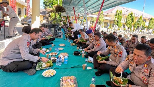 Didampingi pejabat utama (PJU) Polres Situbondo, Kapolres AKBP Rezi Dharmawan melakukan sarapan nasi bungkus bersama para anggota. Langkah itu dilakukan untuk menjalin kebersamaan dan kekompakan.