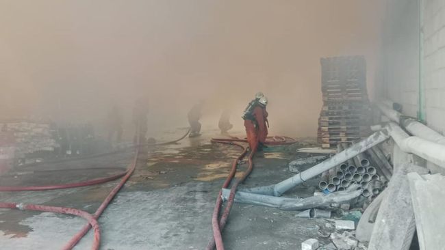Menurutnya, api yang melahap gudang berukuran 20x20 meter diduga karena korsleting listrik. Api baru bisa dipadamkan pada pukul 14.51 WIB.