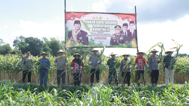 "Hari ini kami turut menggelar panen raya jagung di lahan milik Polres Blitar Kota yang berada di wilayah Kepanjenkidul Kota Blitar. Kami laksanakan panen jagung serentak kuartal II, yang juga dipimpin Presiden RI Prabowo Subianto," terang Yudho, Kamis (5/6/2026).