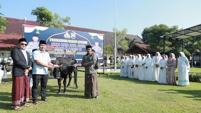 "Hewan kurban yang dibagikan kepada masyarakat ini, 1 ekor sapi berasal dari Bupati Jombang, selebihnya dari Pegawai Negeri Pada Polri (PNPP) sebagai bentuk nilai ibadah dan ketakwaan kepada Tuhan Yang Maha Esa," kata Kapolres Jombang AKBP Ardi Kurniawan, Sabtu (7/6/2025).