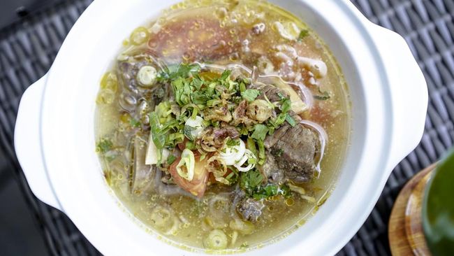 - Sajikan dengan kuah kaldu bening dan sayuran.