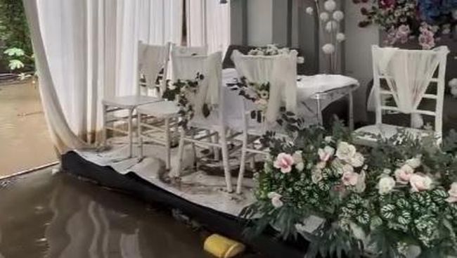Untungnya, lanjut Sholiha, banjir di dusun tersebut berangsur-angsur surut hingga akhirnya sekitar pukul 11.00 WIB resepsi pernikahan Zuhud dan Laili bisa kembali dilanjutkan di tenda.
