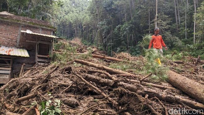 "Sebelumnya itu sudah ada tanda-tanda retakan di atas bukit. Nah, kemarin pagi warga mendengar suara gemuruh dan gemertak kayu-kayu yang terbawa longsor," ujarnya.