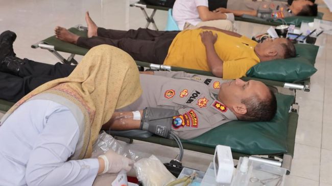 Menyambut Hari Bhayangkara ke 79, Polres Lamongan menggelar serangkaian kegiatan sosial. Salah satunya adalah bakti kesehatan donor darah yang digelar di Gedung SKJ Polres Lamongan, Kamis (12/6/2025),