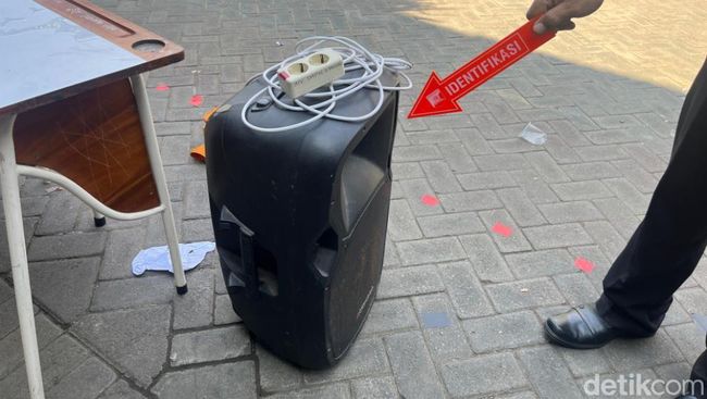 Polisi juga mengamankan sejumlah barang bukti. Di antaranya satu buah alat mikrofon kabel warna hitam, kabel warna merah dengan kondisi colokan rusak, sebuah salon aktif speaker dan satu rol kabel colokan warna putih panjang kurang 5 meter.
