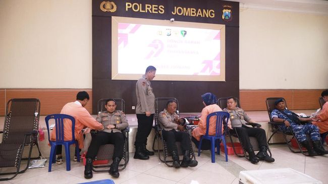 Setelah bakti kesehatan dan bakti sosial, kali ini, Polres Jombang menggelar donor darah menyambut Hari Bhayangkara ke-79. Donor darah massal ini menghasilkan 101 kantong darah berbagai golongan.