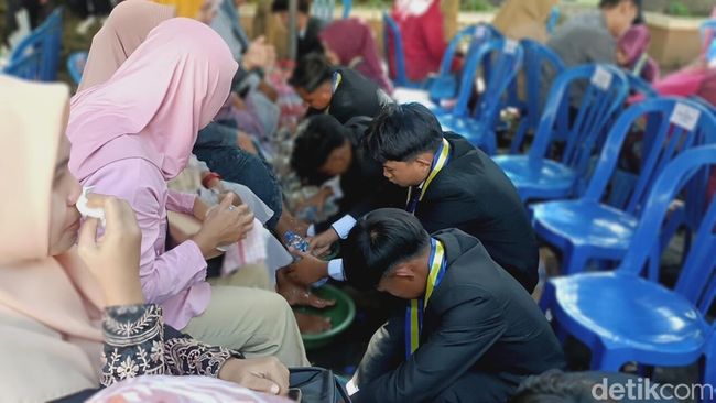 Tradisi basuh kaki ini menjadi momen sakral untuk memohon maaf dan mengungkapkan rasa terima kasih atas segala pengorbanan orang tua selama anak-anak menempuh pendidikan di bangku SMP.