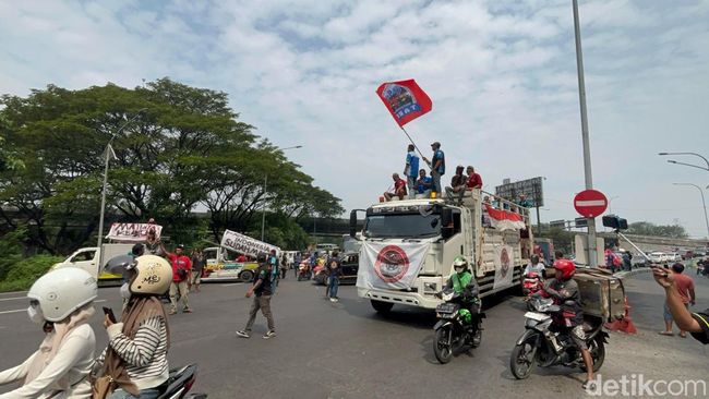 Aksi teatrikal dilakukan ribuan sopir truk saat demo aturan over dimension over loading (ODOL) di Surabaya. Pengibaran bendera dengan ukuran besar dan panjang mewarnai unjuk rasa ribuan sopir truk di Surabaya. Bukan cuma itu, sebagian dari mereka juga membawa keranda jenazah.