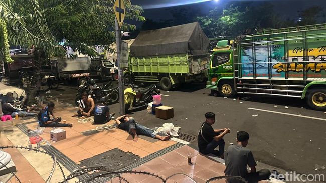 Pantauan detikJatim di Kantor Gubernur Jatim hingga pukul 22.30 WIB, ratusan sopir truk tidur di Jalan Pahlawan depan Kantor Gubernur Jatim.