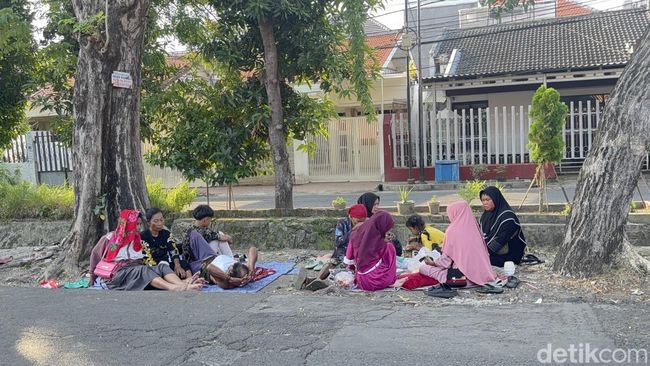 Kini, ia dan keluarga pun masih menunggu di sekitaran Asrama Haji Surabaya. Beberapa mobil terparkir di tepi jalan, mereka lalu menggelar tikar untuk menunggu informasi lebih lanjut terkait kedatangan jemaah.