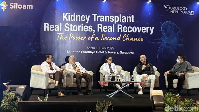 "Kalau sudah menjadi gagal ginjal tahap akhir, kan ada tiga pilihan. Pilihan transplant ini adalah, dimanapun di seluruh dunia, adalah pilihan yang terbaik. Begitu fungsi ginjal di bawah 15 persen, itu sudah harus melakukan transplantasi," ujarnya usai gelar wicara Kidney Transplant Real Stories, Real Recovery-The Power of Second Chance di Sheraton Surabaya Hotel & Tower, Sabtu (21/6/2025).