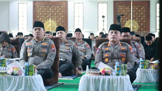 Dalam rangka memperingati Hari Bhayangkara ke-79, Polda Jawa Timur menggelar doa dan zikir bersama di Masjid Arif Nurul Huda Polda Jatim, Kamis (25/6/2025). Kegiatan ini menjadi momen reflektif bagi jajaran kepolisian untuk bersyukur dan memohon petunjuk dalam mengemban tugas menjaga keamanan serta ketertiban masyarakat.