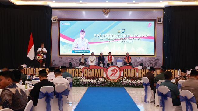 Polda Jatim memperingati Hari Bhayangkara ke-79. Salah satu rangkaian acaranya yakni menggelar doa lintas agama sebagai simbol kerukunan antarumat beragama.