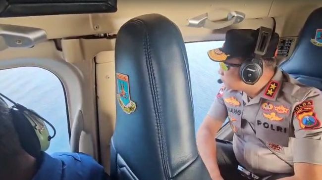 Kemudian, rombongan Kapolda Jatim melakukan pantauan melalui udara. Rombongan menaiki helikopter menyisir lokasi tenggelamnya kapal.