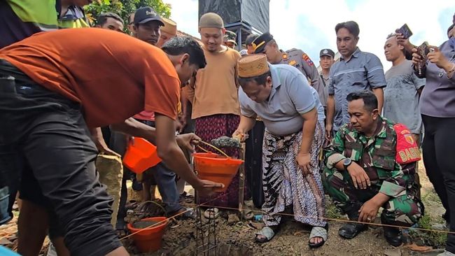 Kamis (3/7/2025) siang, Haji Her melakukan peletakan batu pertama dalam pembangunan rumah milik Timah, seorang warga Nang Daja, Desa Konang, Kecamatan Galis, Pamekasan.