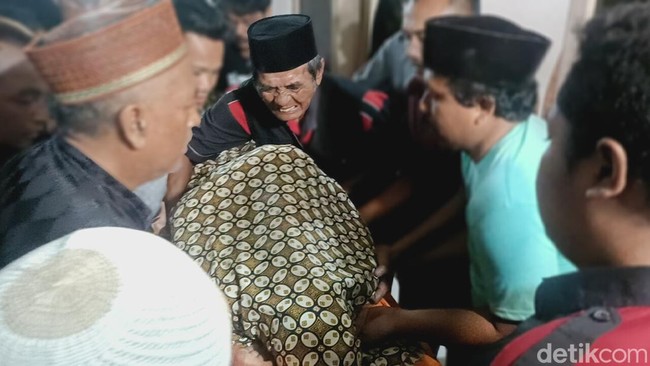 Isak tangis keluarga dan kerabat pecah saat jenazah diturunkan dari ambulans. Warga sekitar turut hadir memberikan doa dan penghormatan terakhir bagi almarhum.