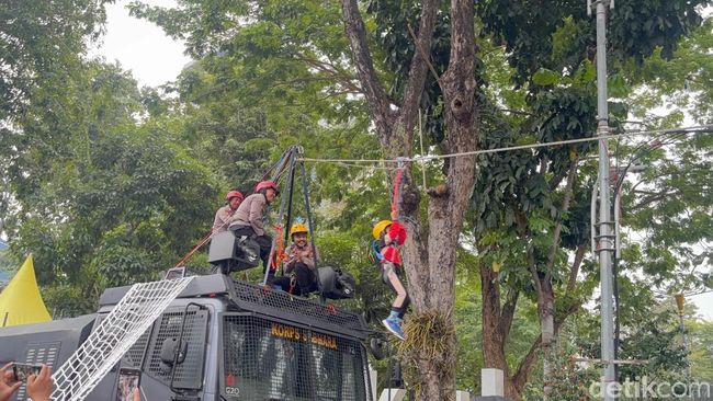 Bukan hanya wahana, anak-anak juga tampak antusias mengenal polisi satwa Polri atau Unit K-9, menaiki kendaraan polisi, hingga mencoba menggunakan alat keamanan yang digunakan oleh Unit Dalmas.