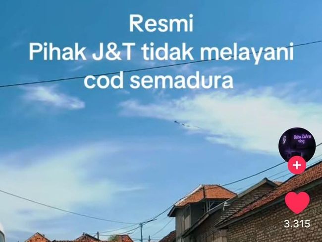 "Resmi Pihak J&T tidak melayani COD Se-Madura. Komentarnya reng Medureh," demikian narasi video TikTok yang viral tersebut.