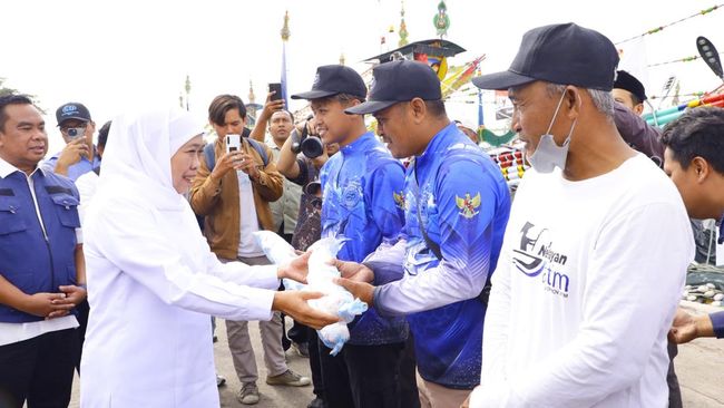 Didampingi Kepala Dinas Kelautan dan Perikanan (DKP) Provinsi Jatim Isa Anshori dan Wakil Bupati Banyuwangi Mujiono, Khofifah memberikan 100 alat tangkap senilai Rp 60 juta yang diberikan secara simbolis kepada 25 orang.
